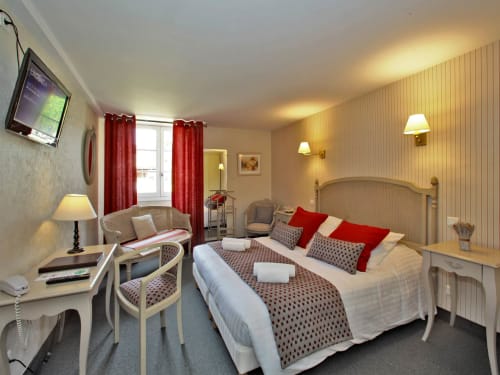Ce petit hôtel de charme, avec sa célèbre façade en pierre du pays, toute fleurie dès le printemps, est situé à deux pas de la cité médiévale et de son centre culturel.